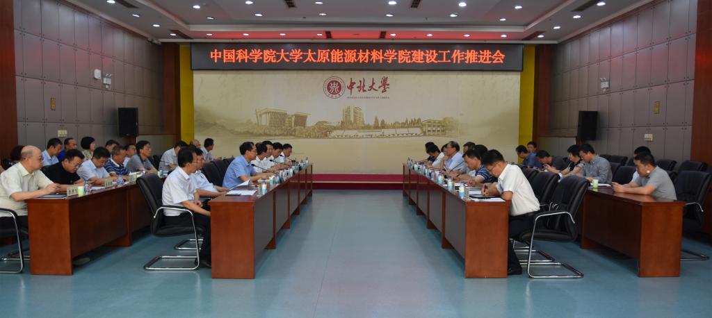 7月31日,中国科学院大学太原能源材料学院建设工作推进会在我校主楼十五层会议室举行。太原市副市长车建华、副秘书长崔疆红,中科院煤化所所长房倚天、副所长李晶平,我校李忠人、沈兴全、贾维河、雷锋斌、赵贵哲、潘晋孝、苏铁熊等校领导出席会议。三方相关部门负责人参加了会议。