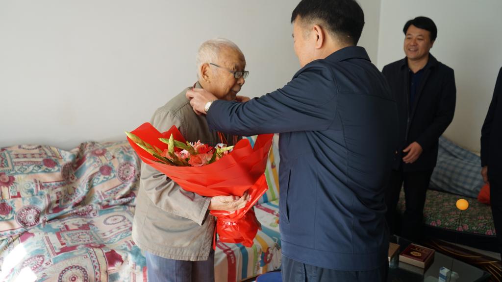 在两位老同志的家中,沈兴全分别为他们佩戴了纪念章,并送上鲜花和慰问品。校领导深情握着两位老人的手,与他们一起追忆了难忘的峥嵘岁月,感谢他们为保卫国家和人民所作出的贡献,高度赞扬了他们为国家、为人民、为历史做出的不朽功勋。同时询问了两位老人的生活情况和身体状况,转达了学校的关心和问候。希望他们继续关心和支持学校的发展,保重身体,乐享晚年。