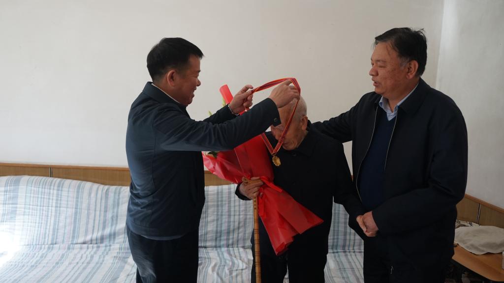 当天上午,校党委书记沈兴全、副校长赵贵哲专程来到我校参加抗美援朝出国作战老兵、离退休老干部张映朴、王世发家中,代表学校将纪念章亲手转交给两位老人,向他们致以崇高敬意,并送上节日祝福。