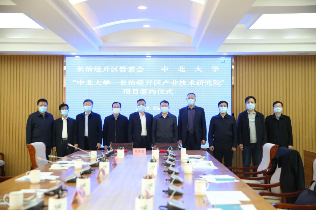 3月23日,我校与长治经开区就产业技术研究院项目签署合作协议。校党委书记沈兴全、长治市市长杨勤荣出席签约仪式,长治市市委常委、常务副市长尚日红主持会议。副校长李东光代表学校签署合作协议。