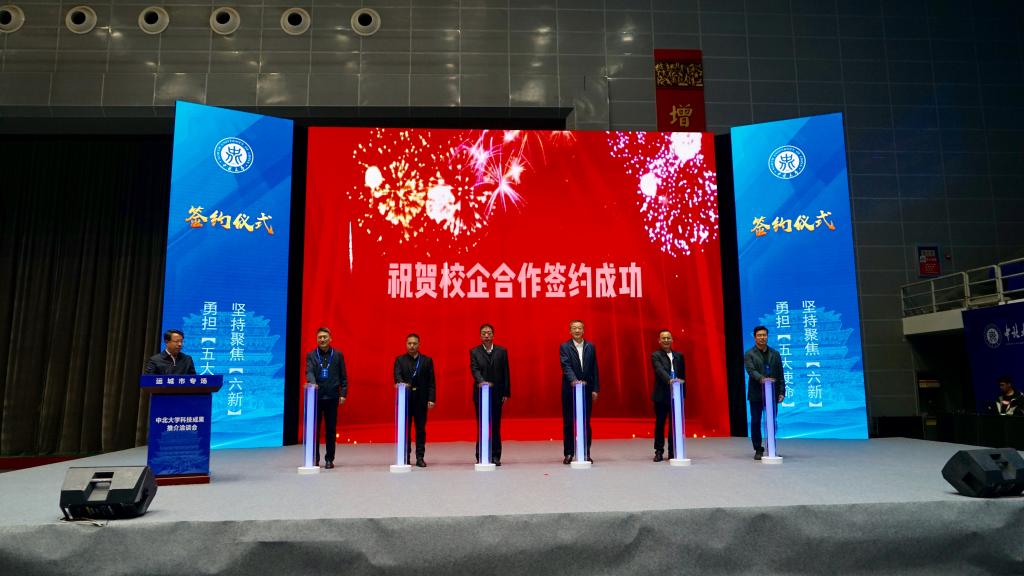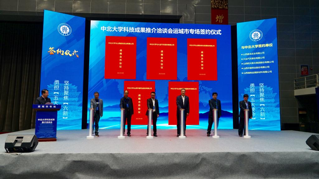 4月20日—21日,我校科技成果运城推介洽谈会在运城市体育馆成功举行。此次活动标志着我校与运城市战略合作取得阶段性成果,开启了产学研深度对接、深入合作的新征程。校党委书记沈兴全、运城市委书记丁小强出席开幕式并致辞。省科技厅副厅长张其光及运城市领导杜自立、陈竹琴出席。我校副校长李东光代表学校与山西建龙实业有限公司等10家企业集中签订合作框架协议。副市长崔元斌主持开幕式。