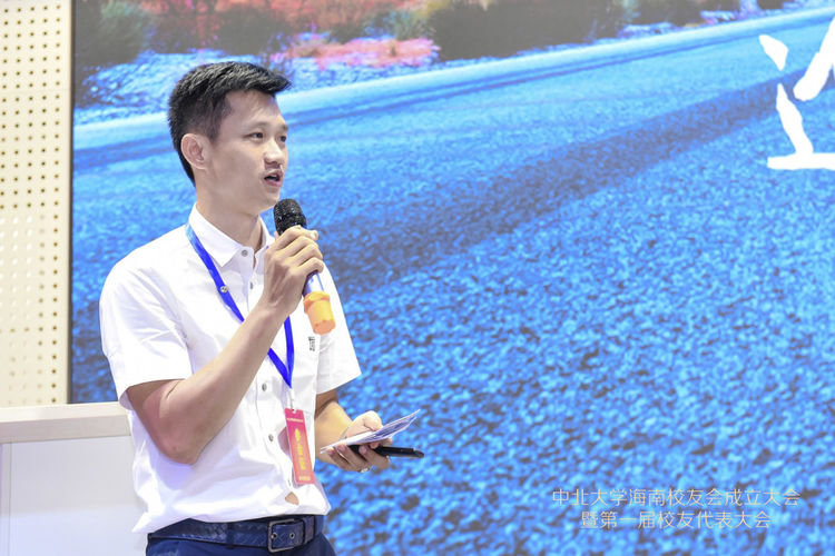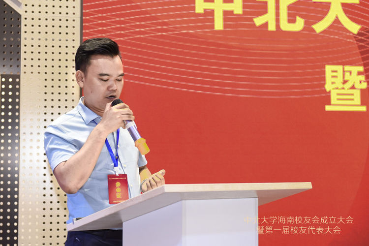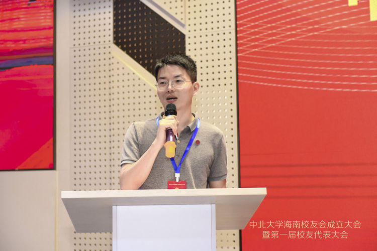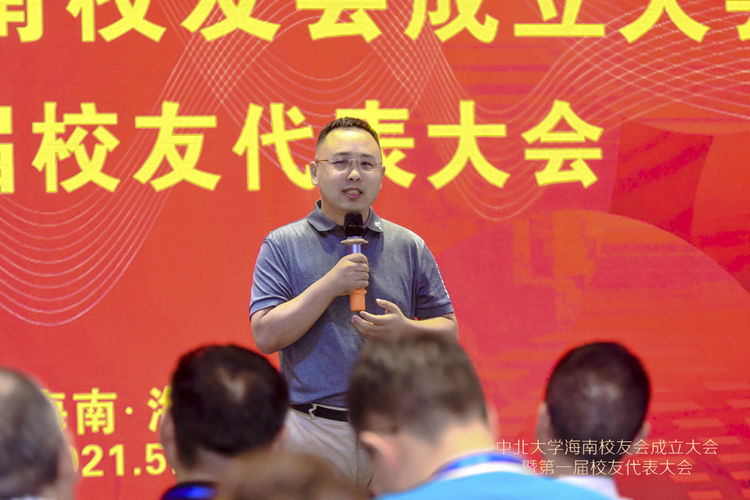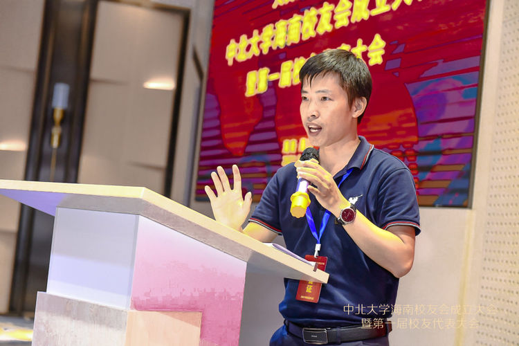 本次大会97级校友符铮选为海南校友会会长,95级校友李文寅当选为海南校友会名誉会长,04级校友洪诺当选为海南校友会秘书长。海南校友会会长符铮以《进无止境,坚持不懈》为题作了热情洋溢又接地气的讲话,祝福母校八十华诞,表达了校友会成立的宗旨及愿景。他对母校领导、兄弟校友会、各界校友的大力支持及为本次大会筹备的辛勤付出的小伙伴们表示衷心的感谢。他指出海南校友会的成立将是海南校友们心系母校的精神家园,搭建了校友之间信息交流、资源共享、联络感情的平台,是联系和凝聚广大校友的桥梁与纽带。海南校友会将秉承太行精神和“致知于行”的校训,真诚服务于校友,为母校建设添砖加瓦,助力中北大学双一流建设,助力海南自由贸易港建设,为祖国的繁荣富强贡献绵薄之力。海南校友会秘书长洪诺作了校友会筹备工作报告,并表示会继续凝聚海南校友力量,为海南校友会的发展出谋献策。