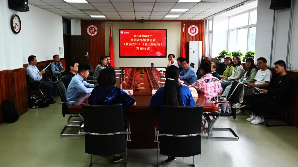 5月17日,作为建校80周年献礼宣传片,历时2个多月,由校党委宣传部联合艺术学院、中国军工文化中北艺术团、山西太阳石文化传媒有限公司共同打造的原创音乐短剧《梦回太行》《再上新征程》正式发布。校党委副书记雷锋斌出席发布会。党委宣传部部长薛实军主持发布会。艺术学院党委书记夏瑞丽,陕军、丁飞、甄茜、刘振杰等主创人员及校内媒体学生记者代表参加了发布仪式。