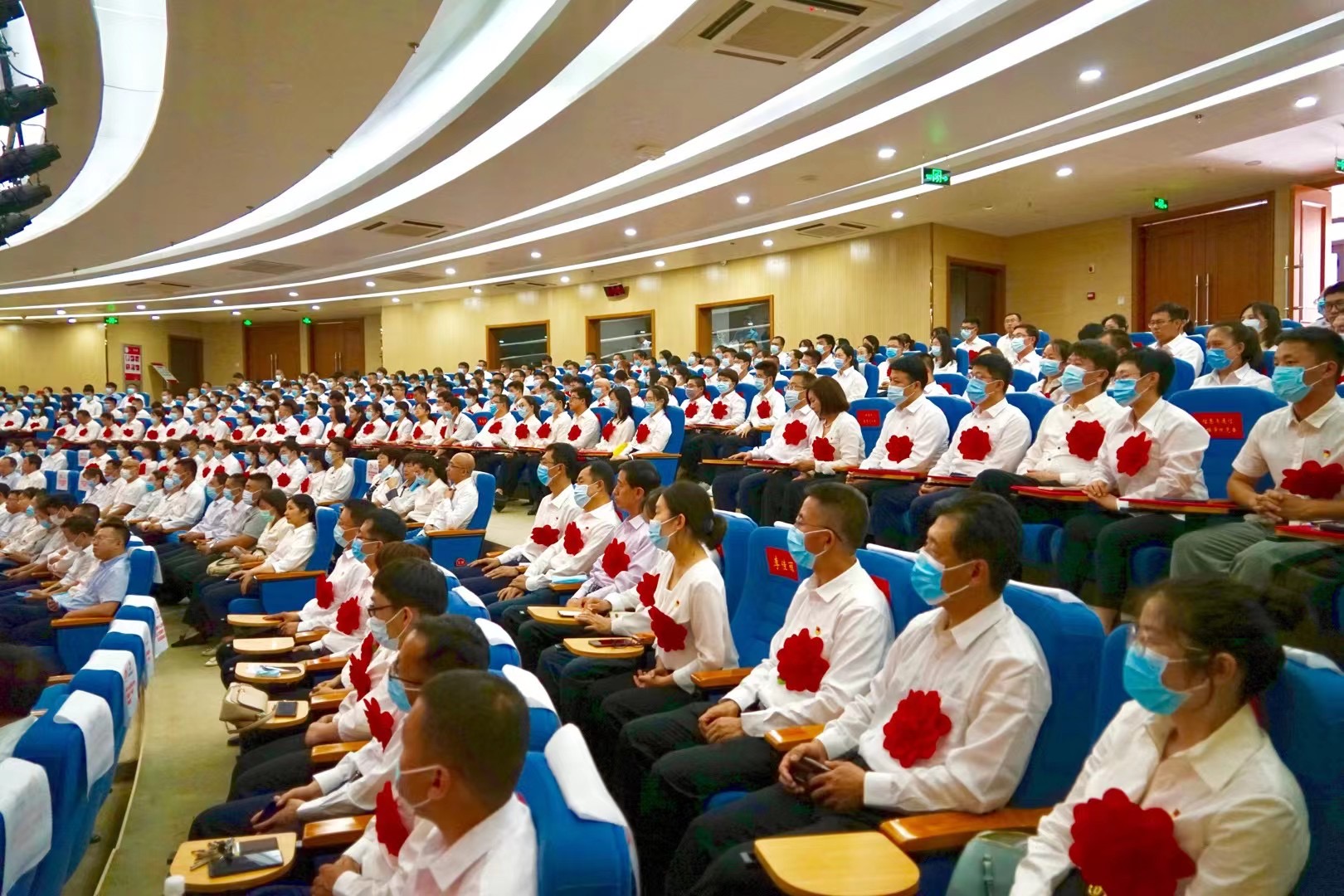 在中国共产党成立100周年之际,6月29日,我校“两优一先”表彰大会在瑾瑜国际会议中心召开。校党委书记沈兴全,校党委副书记薛智、雷锋斌,副校长赵贵哲、潘晋孝、李东光、苏铁熊、刘俊出席大会并为获奖集体和个人代表颁奖。校党委委员、中层党员领导干部、党支部书记、受表彰人员及党员代表参加会议。校党委副书记薛智主持会议。