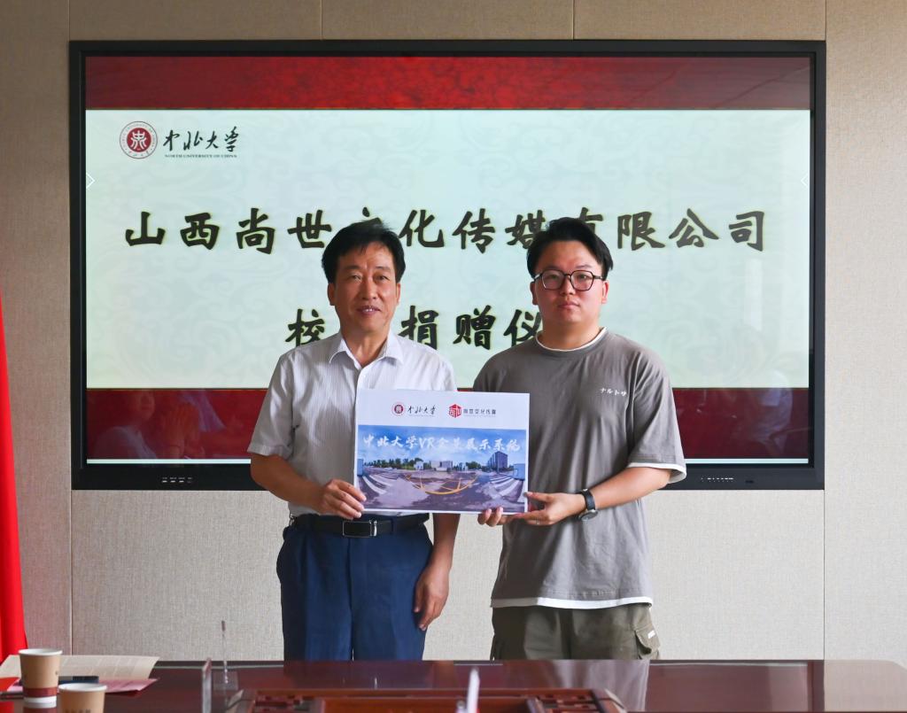 7月5日,山西尚世文化传媒有限公司执行董事、仪器与电子学院2021届校友尚琳琳代表企业向母校捐赠“校园VR智慧展示信息一体化系统”。校党委副书记雷锋斌代表学校接受捐赠。校党委宣传部部长薛实军主持仪式。校友办、仪器与电子学院、人文社会科学学院、艺术学院等相关部门、学院负责人和教师代表参加了仪式。
