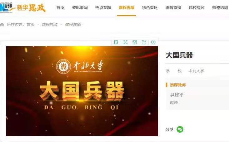 中北大学党委围绕落实“立德树人”根本任务,将党史学习与课程思政建设相结合,组织一线教师打造了13讲“课程思政”名师公开课,邀请中北大学一线骨干教师,开发了《大国兵器》《大美三晋》《工程制图》《财务管理》《音乐表演》《兵器测试技术》等专业课程。这些课程有的重点介绍从党的百年历史中寻根溯源,有的重点介绍从党的精神谱系中汲取营养、汲取智慧、汲取力量,有的重点介绍从教学、科研实践中挖掘有特色、有风格的思政案例,形成一批“课程思政”建设的实践创新成果。其中《机械原理》《大国兵器》课程思政案例已在新华网新华思政平台上线展播,向全社会开放共享。《大国兵器》作为该批“课程思政”名师公开课的“佼佼者”,备受关注。《大国兵器》课程的创作团队,注重培养学生爱国强军的国防情怀,依托学校强大的兵器学科专业优势,扎根学校底蕴深厚的国防军工文化,邀请了王泽山、王哲荣、朵英贤、刘永才、刘尚合、芮筱亭、苏哲子、李魁武、杨绍卿、杨树兴、吴一戎、张锡祥等12位院士领衔主讲,将红色故事、军工故事和中国故事融入教学中,实现了知识传授、能力培养和价值引领的有机统一。该课程在智慧树网全国在线课程平台上线后,已被空军工程大学、长安大学等军地55所高校列为选修课,累计选课学生3万人,互动47.57万次,受到大学生的一致好评,实现了专业知识传授和价值引领的同频共振,达到课程育人的功能。