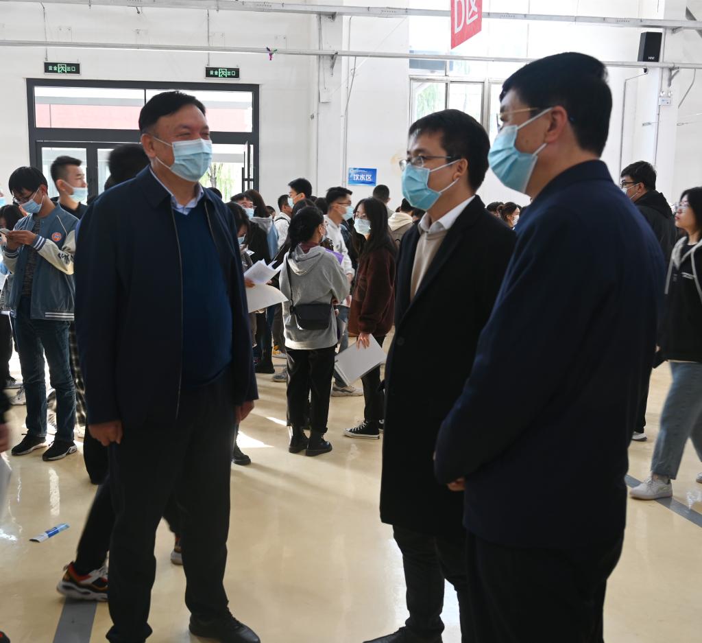 副校长赵贵哲到现场指导工作,看望用人单位代表,了解企业发展、询问企业对人才的需求,并与部分毕业生进行了交谈,关心他们的求职意愿。