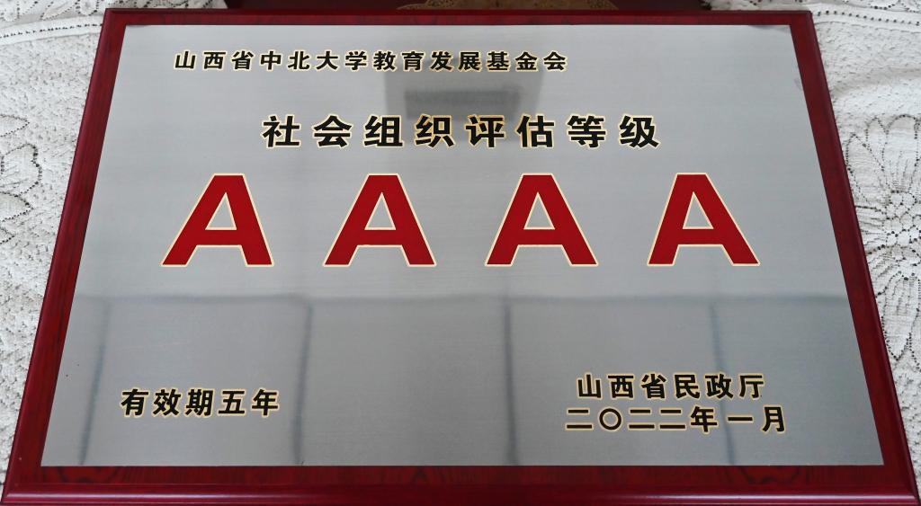 近日,山西省民政厅发文公布了2021年度山西省省直社会组织评估等级结果,我校教育发展基金会获评4A等级社会组织,并正式授予证书及牌匾,有效期限5年。