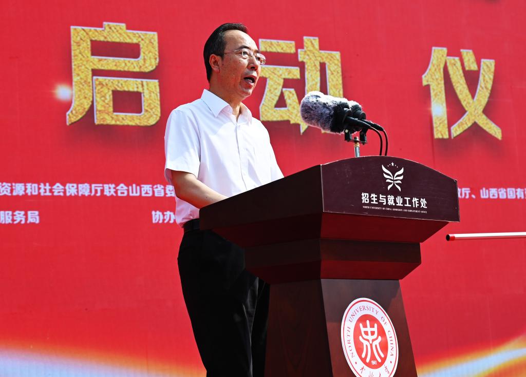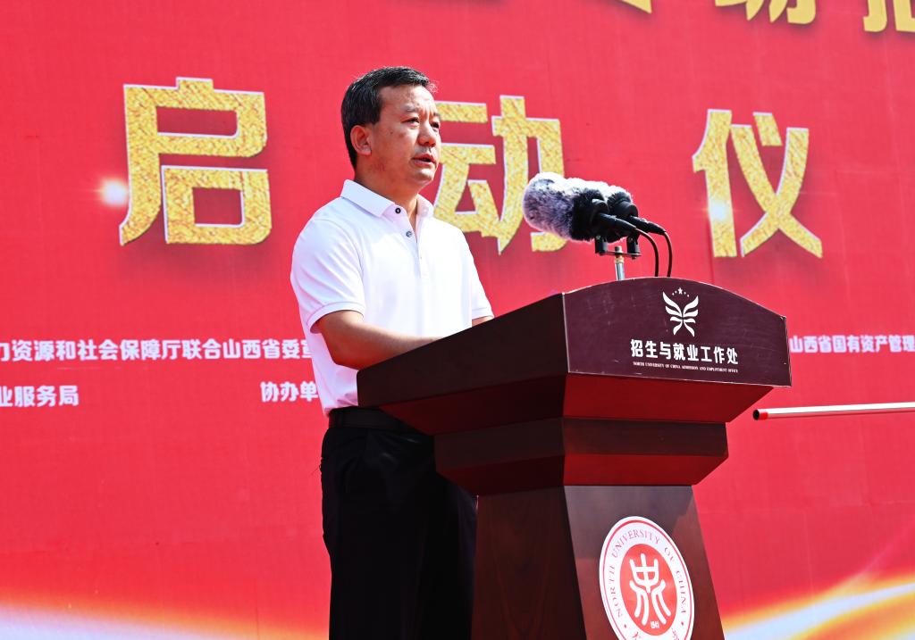 为全面落实省委省政府“稳就业保就业”重要决策部署,为学校毕业生就业提供良好的就业平台和就业岗位,6月18日上午,以“晋才晋用 就业启航”为主题的“惠民生促就业”——校企对接国有企业专场招聘会启动仪式在我校举行。副省长于英杰出席启动仪式。省政府副秘书长赵国光、省人社厅厅长陈振亮、省机关事务管理局局长毛益民、省委教育工委书记、省教育厅副厅长马骏、校党委书记沈兴全、校长熊继军、省财政厅副厅长王会波、省人社厅副厅长李浓、省教育厅副厅长李金碧、省国资委副主任刘峰等领导及相关国有企业负责人参加了启动仪式。活动由山西省人力资源和社会保障厅联合山西省委宣传部、山西省机关事务管理局、山西省教育厅、山西省财政厅、山西国有资产管理委员会、山西省地质勘察局、山西省国有资本运营有限公司主办,山西省就业服务局承办,我校、太原市人力资源和社会保障局、太原人力资源服务产业园协办。