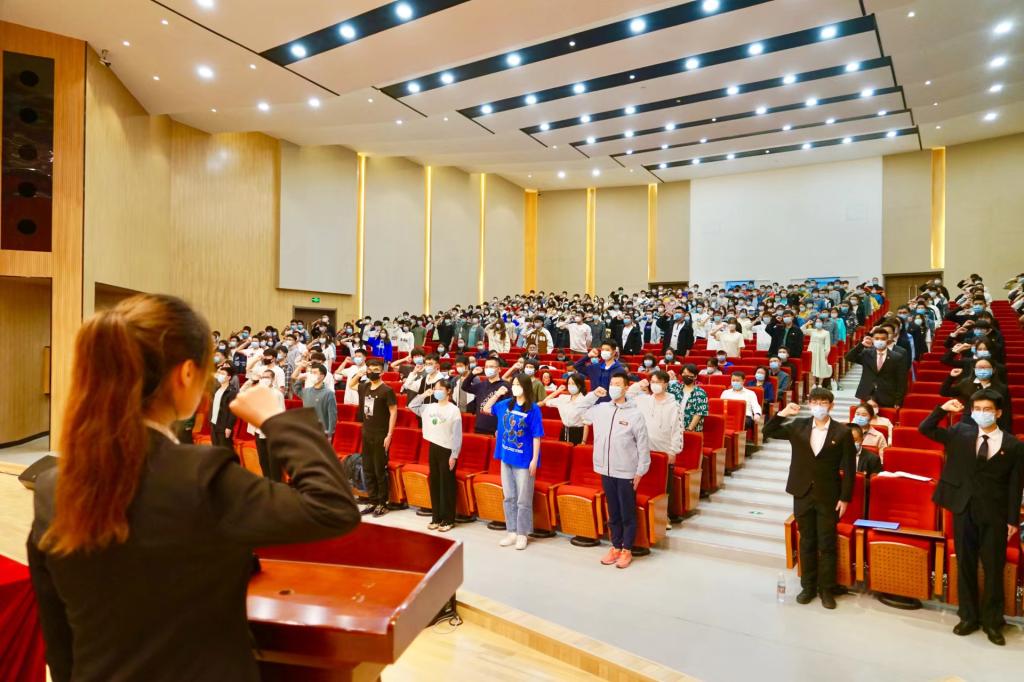 现场师生共同重温入团誓词。大会在嘹亮的团歌声中落下帷幕。