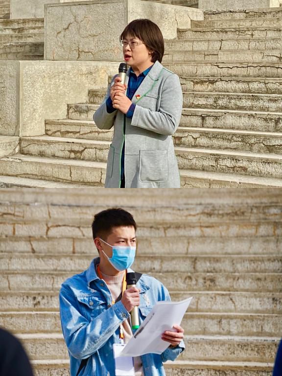 马克思主义学院教师班慧英、校退役军人协会主席、机电工程学院研究生闫江分别代表全体党员干部志愿者、退役大学生志愿者庄严承诺:服从命令听指挥,严守巡检纪律;认真对待巡检工作,努力做到三不:不擅离岗、不留死角、不漏一人;做好科学防护自我,不为组织添乱,将戮力同心,为中北筑起疫情防控最强防线!