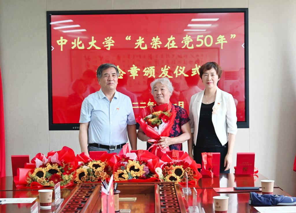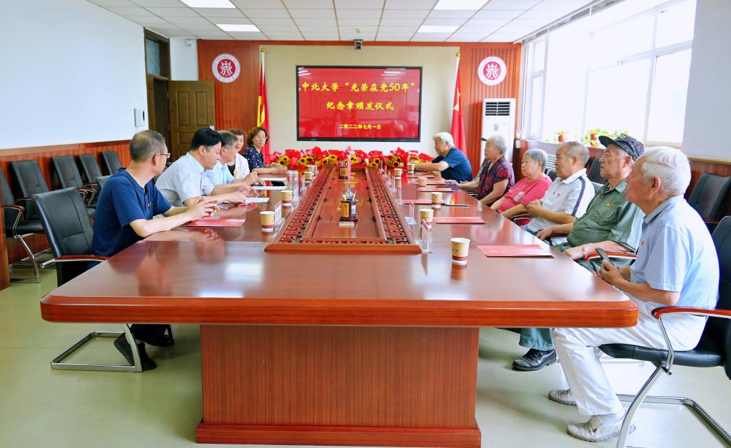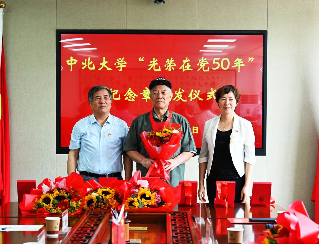 曾建潮代表学校党委向我校12位获此殊荣的老党员表示热烈的祝贺和崇高的敬意!向全校离退休党员和全体老同志致以亲切的问候和美好的祝愿! 他指出,我校广大离退休老同志,包括荣获“光荣在党50年”奖章的12位老党员,是党的历史、高等教育发展史的亲历者、见证者、参与者,是学校事业的奠基者、开拓者、奉献者,为学校的建设和发展做出了重要贡献、发挥了重要作用。老党员的奋斗历程和光辉事迹,给新时代的中北人树立了榜样,是我们学习党史、用好党史最宝贵的资源和财富。全校党员、干部和师生,特别是青年一代,要弘扬老党员、老同志的精神传统,学习他们的崇高品格,让红色基因、革命薪火代代相传,在新征程中书写中北人与党同心、报国为怀、勇担使命的崭新篇章。希望各位老党员以亲身经历讲好革命传统和太行精神,赓续红色血脉,继续为党育人、为国育才,在照顾好自己身体、生活的同时,一如既往地关心支持参与学校的改革发展和党的建设。学校党委将持续做好老党员和离退休老同志各方面工作,坚持做到“政治上尊重、思想上关心、感情上贴近、生活上照顾”,始终保持敬重之心、倾注关爱之情、多做务实之事,努力为老党员、老同志安享晚年创造更好的条件。