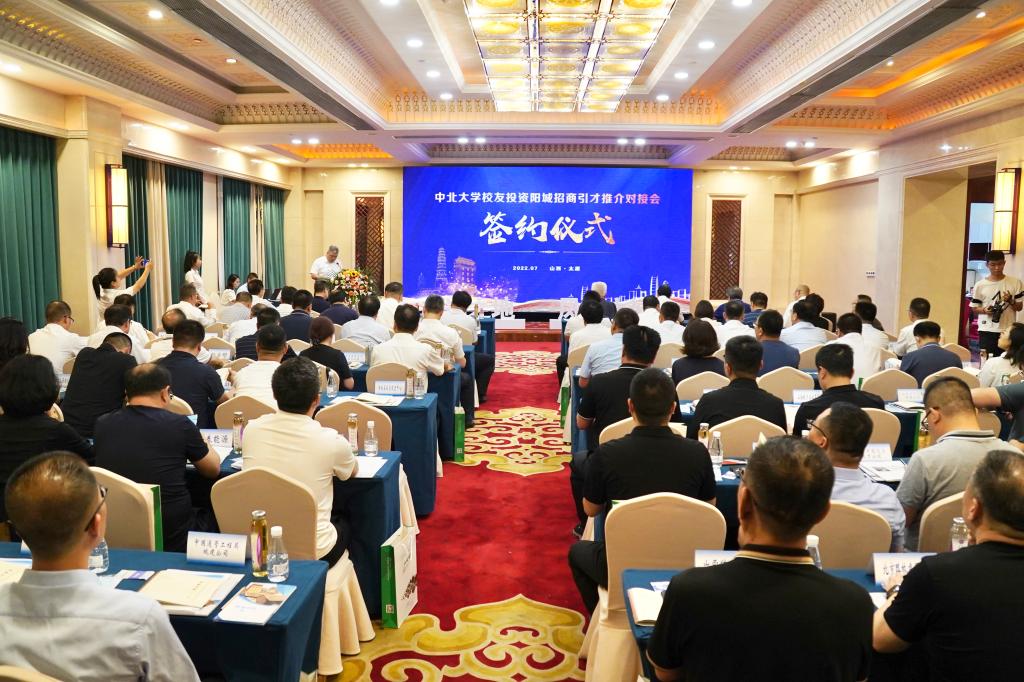 7月16日下午,中北大学校友会投资阳城招商引才推介对接会在省城太原举行。40多位中北大学校友企业家参加了推介对接活动。阳城县城乡一体化供水工程等 7个项目现场签约,总投资约77.5亿元。副校长苏铁熊,中北大学山西校友会会长杨波,阳城县委副书记、县长牛琛及副县长杨二强等出席。我校办公室、校友总会、基金会及相关学院负责人,阳城县相关单位负责人等参加活动。