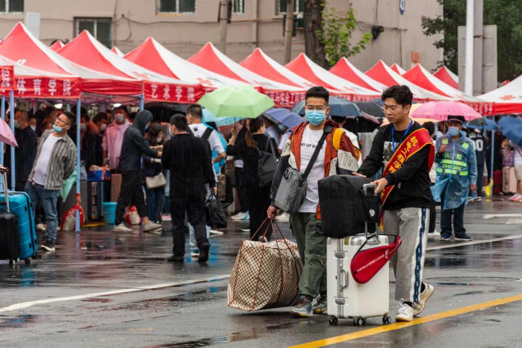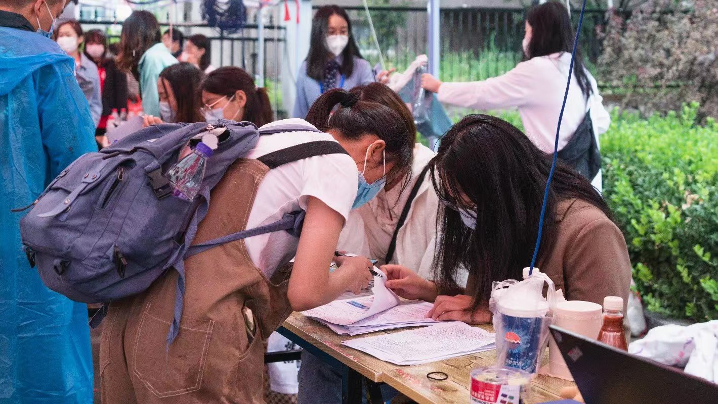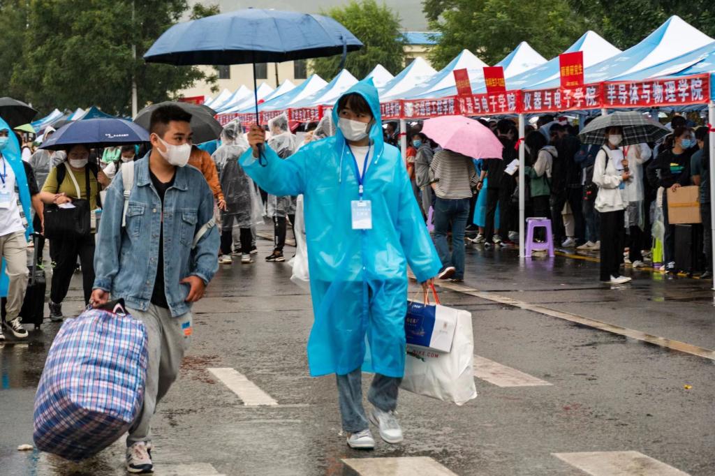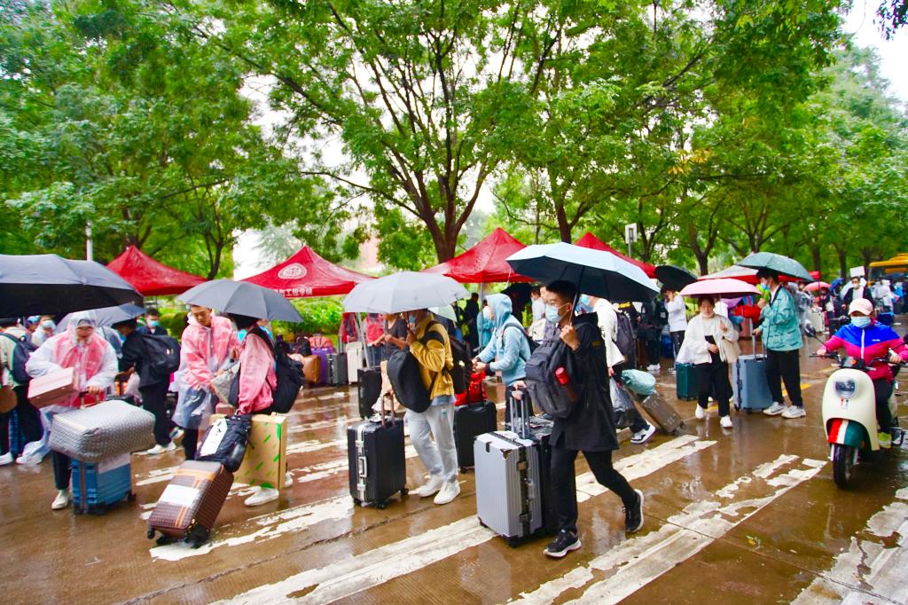 在学校迎新现场,新生们积极配合学校疫情防控工作,由志愿者统一引导,经过防疫通道测量体温,完成身份核验和体温、核查健康码、行程码、同行自查结果、48小时内核酸检测结果、“抵并登记”结果等健康核查工作,所有核查情况无异常后,扫描“场所码”,履行登记手续后,持进校进宿证步行进校,一切工作都有条不紊地进行。尽管新生报到首日小雨连绵,为迎新工作带来一定影响,全体工作人员克服困难,坚守岗位、各司其职,严格落实疫情防控措施,并为新生及家长提供贴心服务,迎新工作平稳安全进行。身着红色马甲的迎新志愿者,穿梭在校园中和迎新报到现场,为新生们引路答疑、搬运行李,“点对点”人性化服务,为新生眼中陌生的校园增添了温馨和暖意。