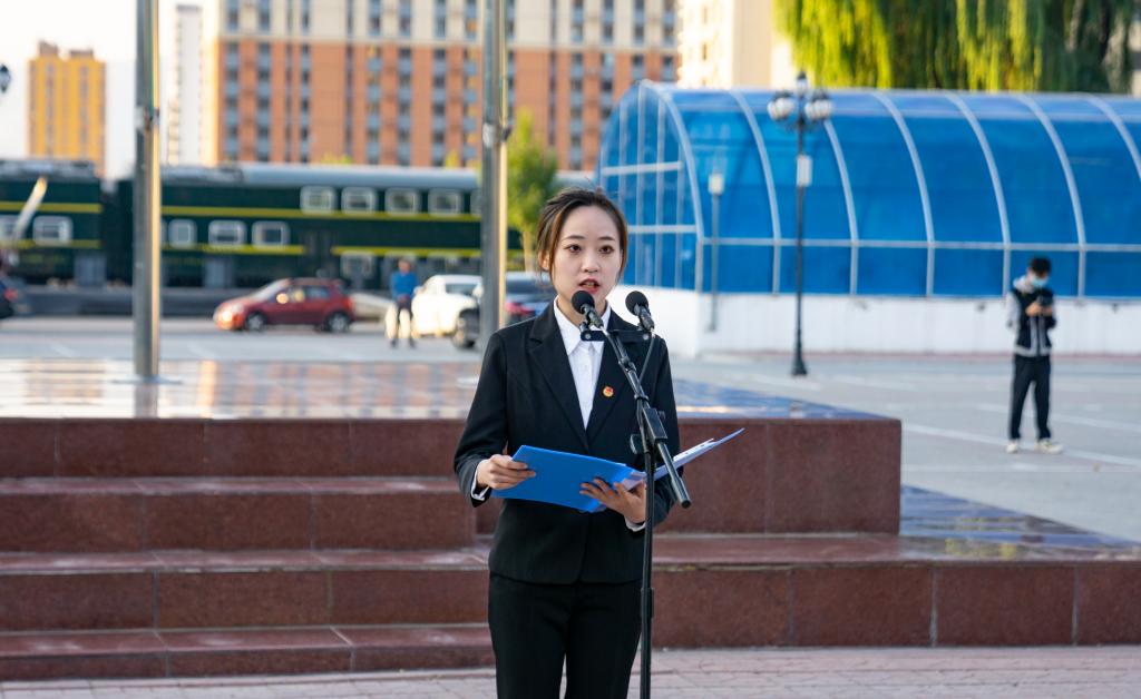 学生代表赵怡君代表广大中北学子承诺,将以青春之我,创建青春之家庭,青春之国家,青春之民族,要以先辈为榜样,磨砺吃苦耐劳的意志,为中北腾飞贡献青春力量。