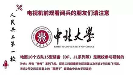 2019,我们与祖国同行,国庆70周年大阅兵,多名校友获得荣誉勋章,参与阅兵执勤,装备支持保障,更多是在军工战线默默奉献青春与年华,用青春向祖国告白,与祖国同行!