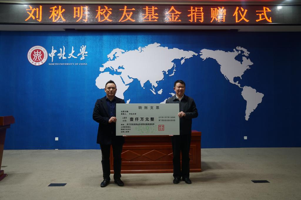 沈兴全代表全校师生向刘秋明校友慷慨捐赠表示感谢。他指出,学校坚守为党育人、为国育才初心,培养了一大批爱国忠诚、敬业担当、脚踏实地、艰苦奋斗的优秀校友,刘秋明校友正是他们中的典型代表。他表示,校友捐赠饱含着对母校的热忱之心、拳拳之意。用好校友捐赠,要做到“三个努力”:一是努力谋发展,让中北更强大;二是努力搭平台,助力校友事业发展;三是努力打造“三全育人”崭新局面,培育更多的优秀人才。他希望大家能以百年大党浸润给我们的信念品格,以八十年办学沉淀下的“太行精神”红色基因,脚踏实地办好中北大学。