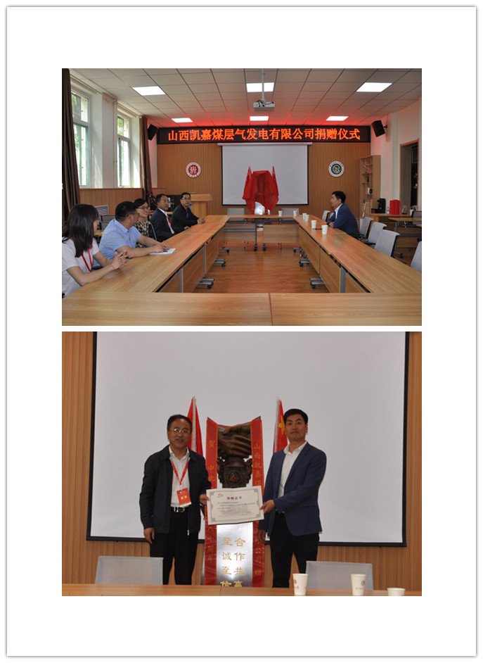 5月19日上午,山西凯嘉煤层气发电有限公司张志飞总经理为学校捐赠“合作共赢,至诚至信”的木雕摆件。山西凯嘉煤层气发电有限公司与中北大学开展了长期的产学研合作,双方在党建共建、员工培训、技术合作等方面取得了丰硕成果。