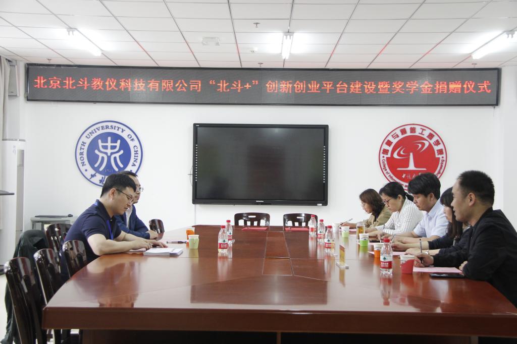 5月14日下午,信息与通信工程学院在院楼713会议室成功举办了北京北斗教仪科技有限公司“北斗+”创新创业平台建设暨奖学金捐赠仪式。北京北斗教仪科技有限公司总经理苏彪、副总经理黄磊、信息与通信工程学院全体院领导参加了此次捐赠仪式。