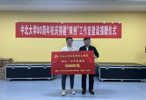 为迎接中北大学八十周年校庆,2010届校友庞晶晶夫妇为学院捐赠总价值50000元的科技艺术“双创”中心建设资金,专项支持艺术学院科技艺术双创中心的硬件改造和后续的创新创业实践教学工作。