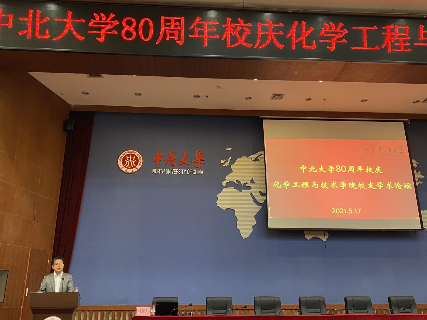 春华秋实挺立时代丰碑,芝兰满室共襄中北腾飞。为庆祝中北大学建校80周年,5月17日上午,化学工程与技术学院杰出校友学术论坛于中北大学图书馆五层学术报告厅举行。学院特邀杰出校友蔡开勇教授、王连军教授、孙勇教授、朱丽华副教授、毛帅副教授为主讲人。院党委书记廖海洪、院长祁贵生、院党委副书记李云、副院长王海宾、胡志勇以及部分师生代表参加报告会。院长祁贵生主持报告会,并致欢迎辞,介绍了主讲校友的科研成果和突出成绩。