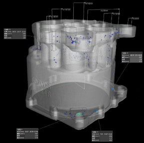 三维CT成像及透明化,内、外部尺⼨测量,内部缺陷检测及标注